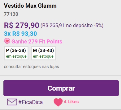 Primeiro passo, você clica na peça que você gostou e ali pertinho do botão de comprar, você verá o ícone #FicaDica