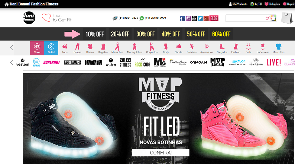 Para encontrar os dencontos basta clicar nas porcentagens que aparecem na parte superior do site conforme indica a setinha abaixo. Após isso é só fazer a festa, até porque as peças irão esgotar rapidinho então aproveite ;)