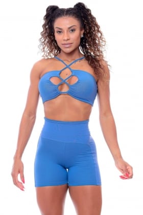 The top is made with cutouts that enhance the bust, in textured fabric with chevron-effect designs.