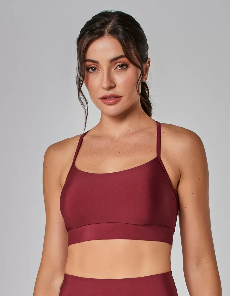 Sports bra with thin straps and medium support, with a tankrback design, ensuring a modern model that offers medium support, providing comfort and safety during medium-impact physical exercises.